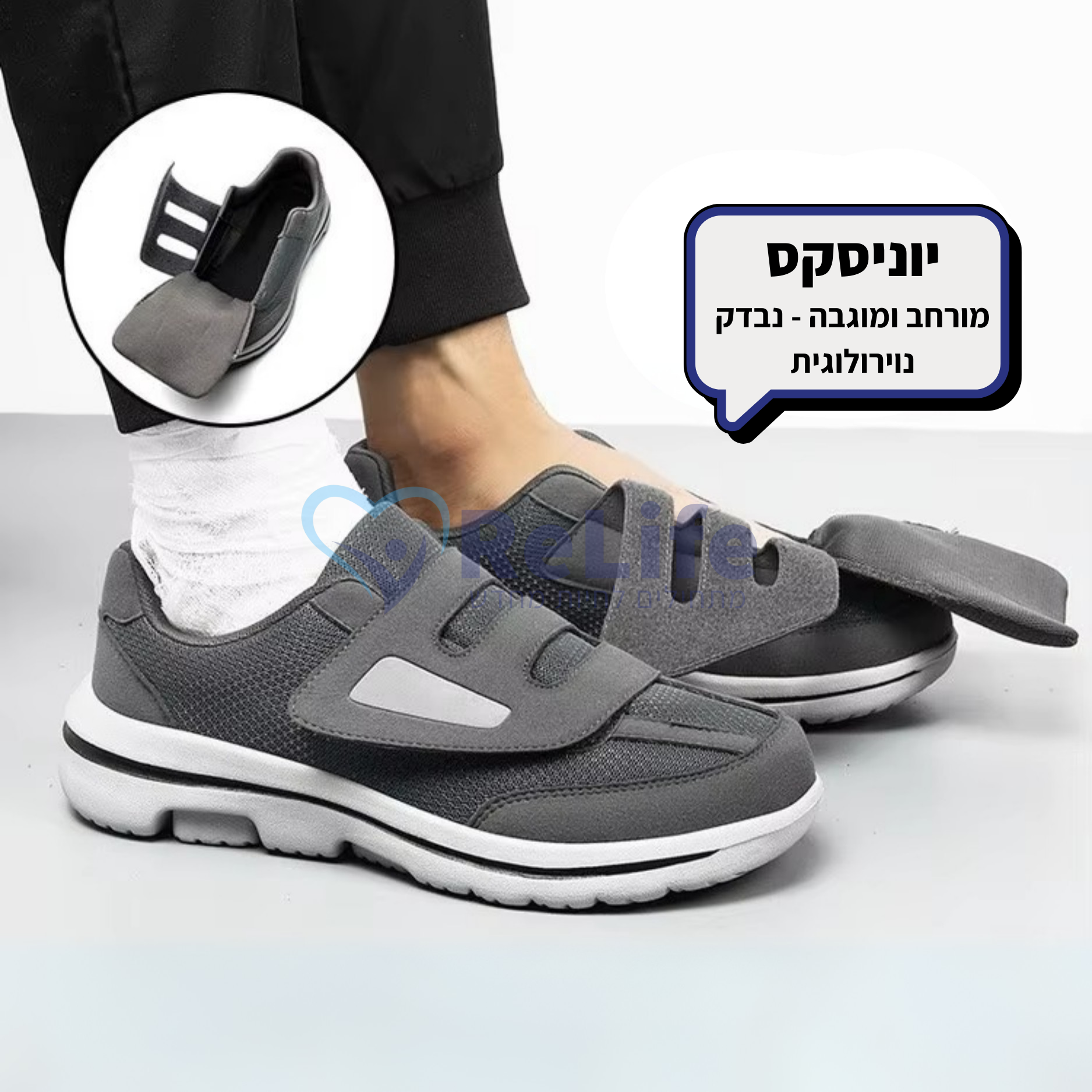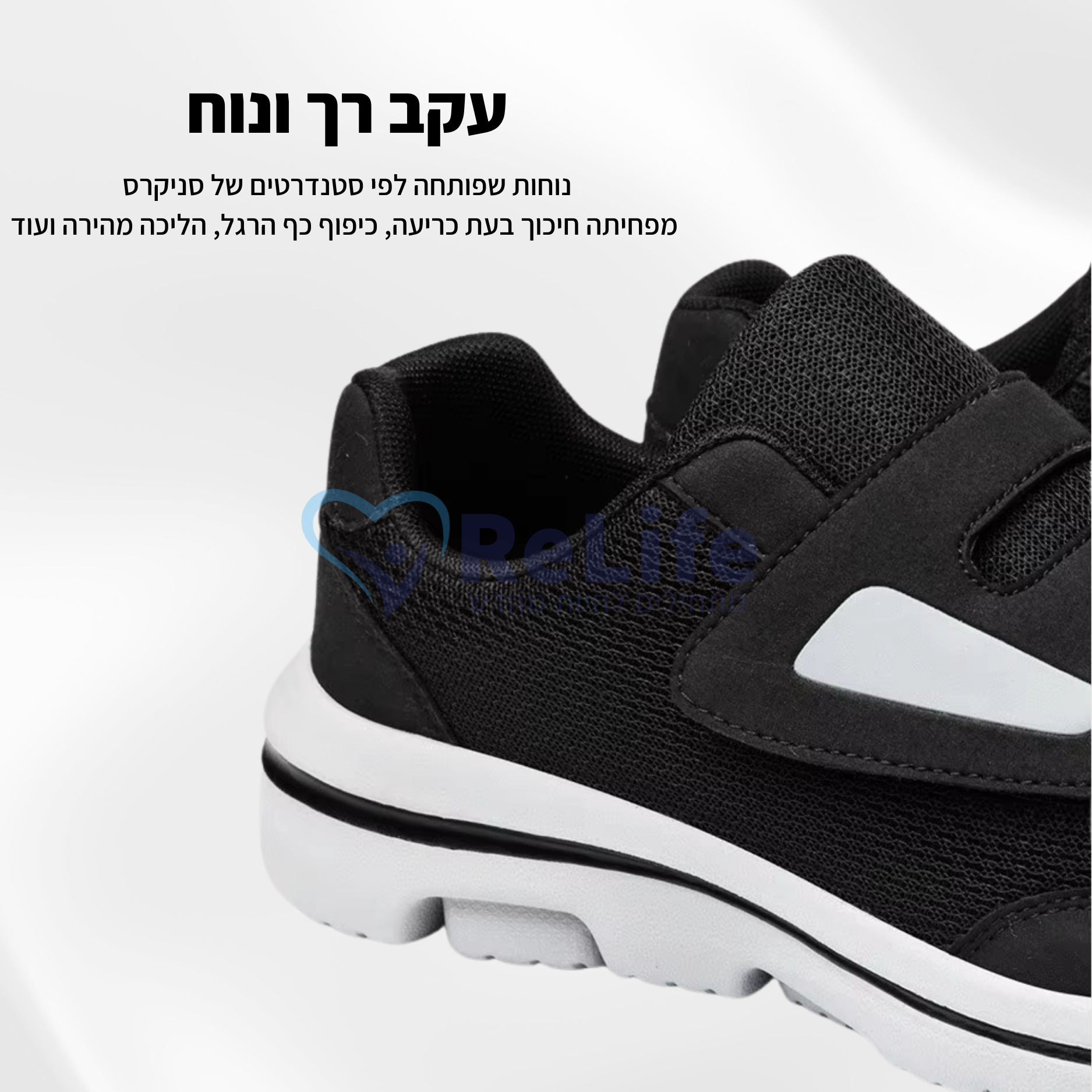 📌 בדיוק בשביל זה פותחו נעלי Re-Life – כדי להעניק לרגליים סוכרתיות נעל בטוחה, רחבה ורכה שמחזירה לכם את הנוחות, היציבות והעצמאות בכל צעד.